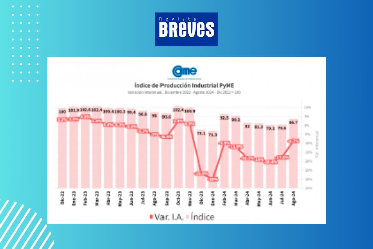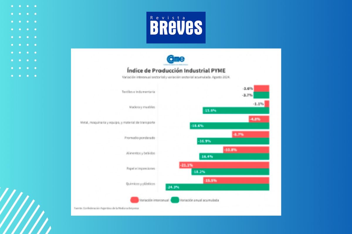 La industria manufacturera de las pequeñas y medianas empresas (pymes) en Argentina sufrió una importante caída del 8,7% en agosto de 2024 en comparación con el mismo mes del año anterior, según los datos revelados por el Índice de Producción Industrial Pyme (IPIP) elaborado por la Confederación Argentina de la Mediana Empresa (CAME). Este retroceso refleja la delicada situación que atraviesa el sector, que acumula una contracción del 16,9% en los primeros ocho meses del año en relación al mismo periodo de 2023.