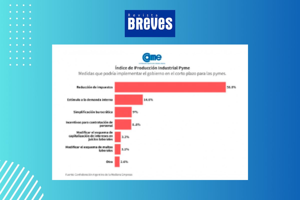En este contexto, las medidas más esperadas por las industrias para el corto plazo incluyen la reducción de impuestos (58,8% de las respuestas) y el estímulo a la demanda interna (14,6%). La simplificación de regulaciones y trámites también se destacó como una necesidad para el 9% de las empresas consultadas.