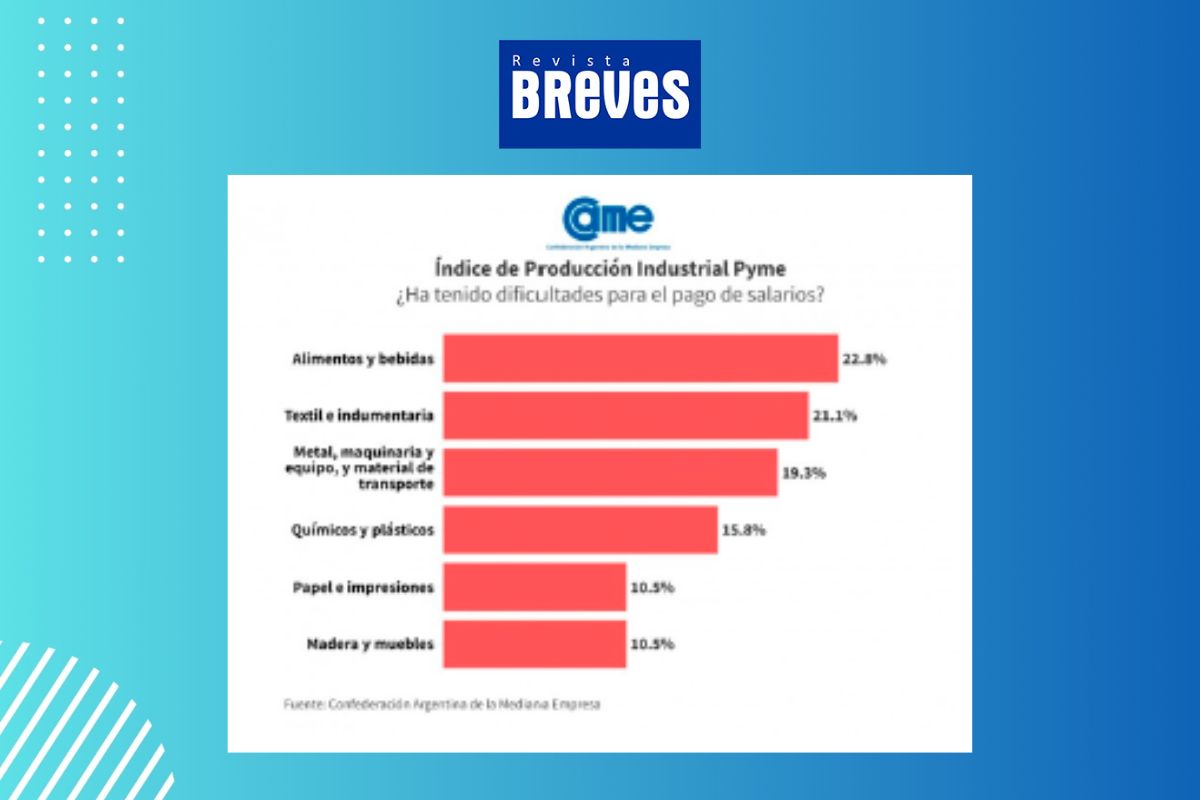 El 16,7% de las pymes informó haber tenido dificultades para afrontar el pago de salarios durante el mes de agosto, una mejora respecto al 19,3% registrado en el mes anterior. Los sectores más afectados en este sentido fueron “Alimentos y bebidas” y “Textiles e indumentaria”, con tasas de dificultades del 22,8% y 21,1%, respectivamente.